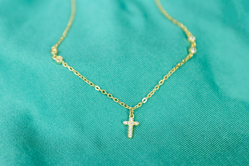 Colar em prata 925 com banho de ouro e cruz em micro zircônia.